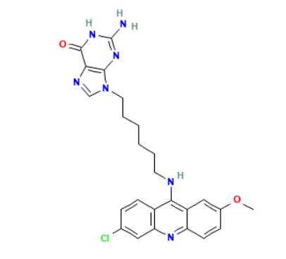 Full name: 6H-Purin-6-one, 2-amino-9-(6-((6-chloro-2-methoxy-9-acridinyl)amino)hexyl)-1,9-dihydro-