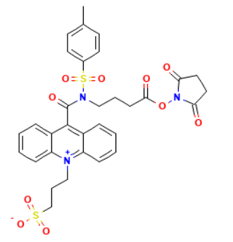 Full name: 3-(9-((4-((2,5-Dioxopyrrolidin-1-yl)oxy)-4-oxobutyl)(tosyl)carbamoyl)acridin-10-ium-10-yl)propane-1-sulfonate