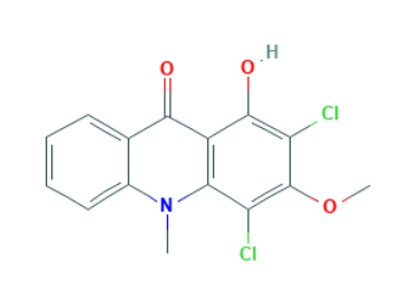 Full name: 2,4-Dichloro-1-hydroxy-3-methoxy-10-methylacridin-9(10H)-one